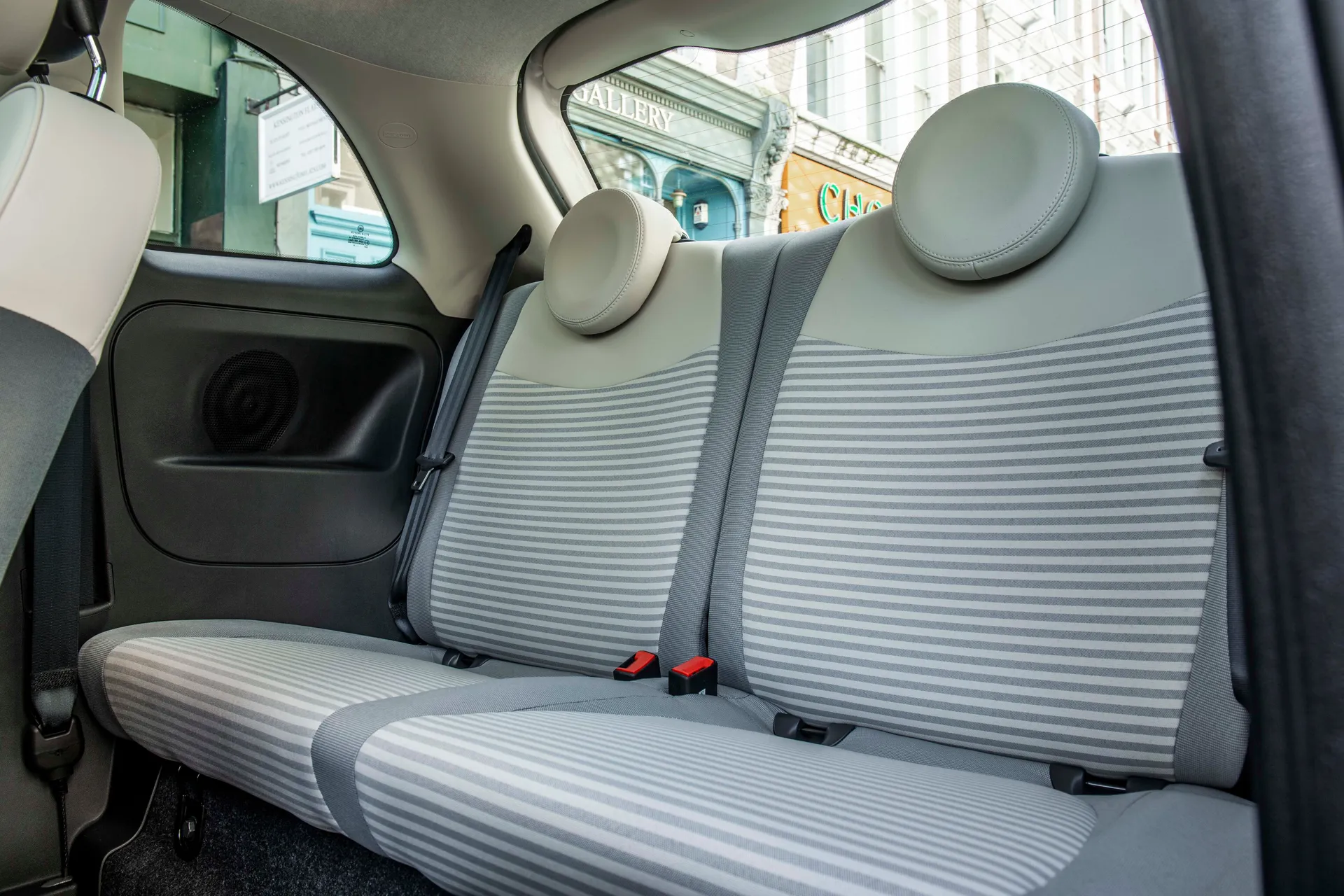 L'habitacle est recouvert d'une épaisse couche de plastique bon marché, résistant et facile à nettoyer. Les petits enfants pourront (à peu près) s'installer sur les sièges arrière. En revanche, si vous voulez faire entrer deux adultes à l'arrière de la 500, vous devrez faire glisser les sièges avant vers l'avant, à tel point que le conducteur et le passager avant se retrouveront coincés contre le tableau de bord. La Fiat 500 a trois portes (il n'existe pas de modèle à quatre portes) : bref, vos passagers devront grimper sur les sièges avant (rabattables vers l'avant) pour entrer et sortir.