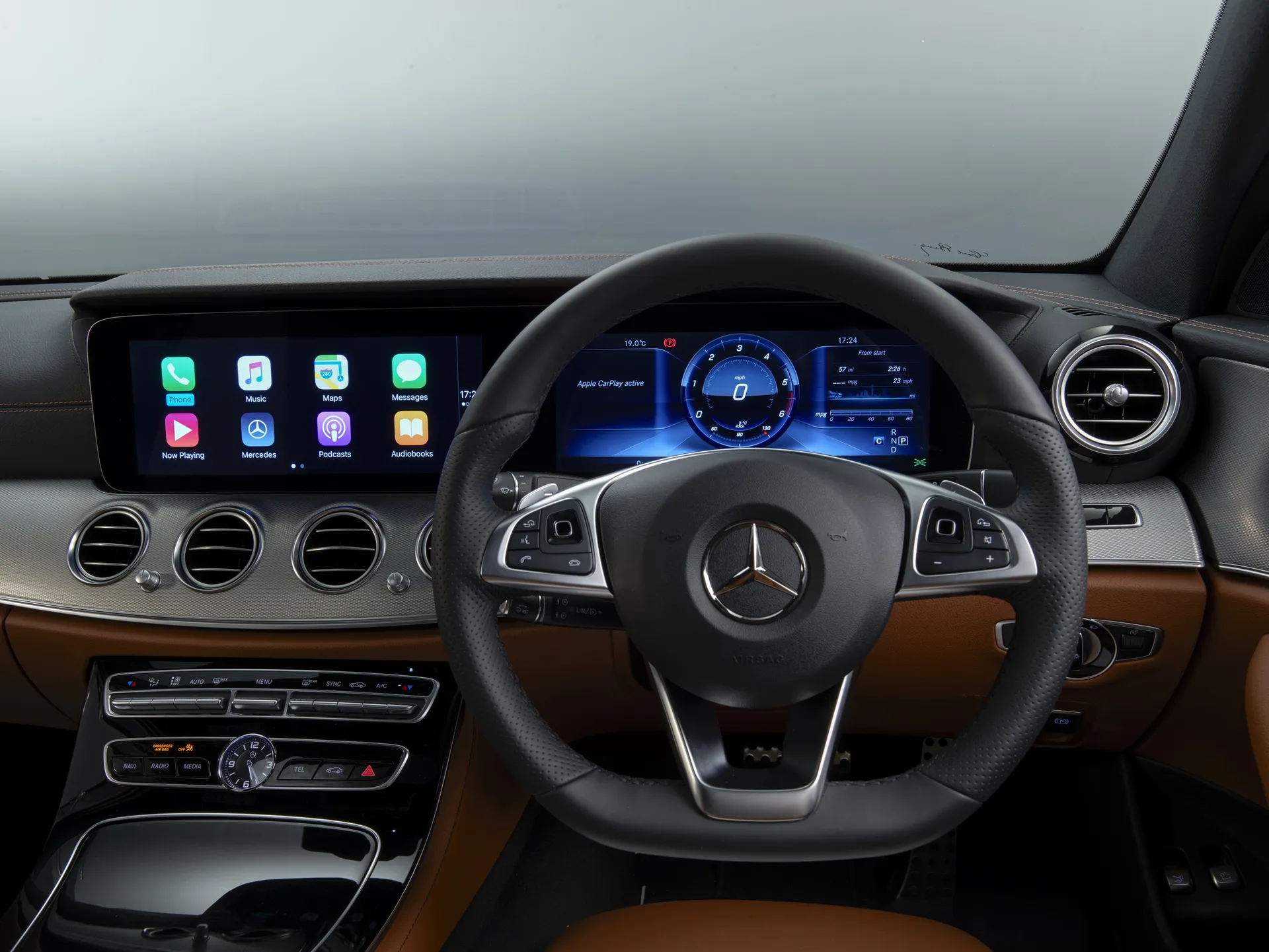 L'un des rares points décevants de l'habitacle de la Mercedes Classe E est également l'un de ses systèmes phares : l'affichage panoramique sur double écran. Ce qui nous désespère, c'est qu'il ne soit pas intégré de série. Mais si vous craquez pour l'option, vous pourrez profiter de ses deux écrans HD 12,3 pouces encastrés dans un même emplacement. L'un remplace le tableau de bord habituel et inonde le conducteur d'informations claires et bien présentées.